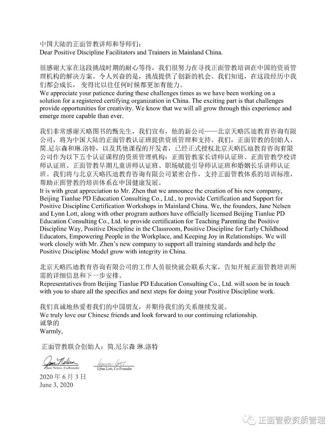 正面管教的创始人,简•尼尔森和琳•洛特,以及其他课程的开发者,已经正式授权北京天略匹迪教育咨询有限公司作为以下课程的资质管理机构: