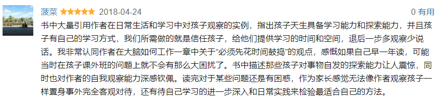 很多读者都说,很难想象《孩子是如何学习的》是初版于20世纪60年代的书籍。书中所描述的故事以及孩子们学习的场景,与我们当今家长和老师们观察到的孩子的学习状况是一样的。