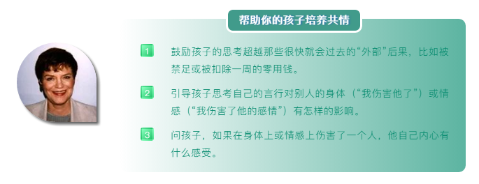 要帮助你的孩子考虑自己和别人的感受,还要考虑自己言行可能造成的后果,既包括积极的后果,也包括消极的后果。