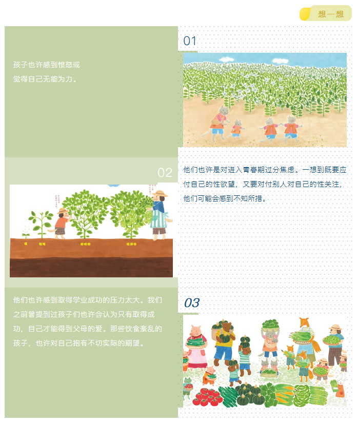 01不要以为你的孩子知道自己为什么会患饮食紊乱症。他们需要你的帮助,才能搞清楚食物给他们造成的困惑。